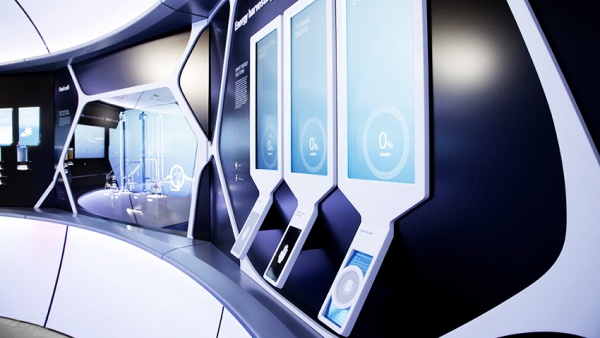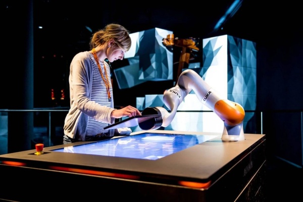 自2016年起,KUKA在其奧格斯堡總部提供了一種沉浸式的互動(dòng)品牌體驗(yàn),讓參觀者深入了解公司的歷史、技術(shù)和核心價(jià)值觀。這一體驗(yàn)空間超過400平方米,與明亮開放的建筑外觀形成鮮明對比,將游客帶入一個(gè)黑暗而充滿神秘感的環(huán)境。