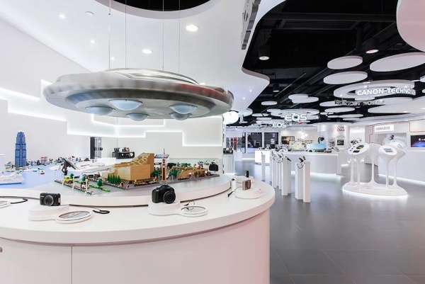 Canon Image Square(Image2)是一個(gè)設(shè)計(jì)與展示攝影技術(shù)完全同步的展覽空間。其設(shè)計(jì)靈感源自像素——數(shù)字成像中最小的單位。像素作為設(shè)計(jì)主題,以圓形天花板、墻壁、燈具和展示裝置的形式在Image2中得到體現(xiàn),營造出一個(gè)現(xiàn)代、明亮和寬敞的空間。