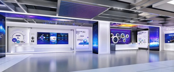展廳設計以“創新之窗,未來濟寧”這?框架為展示形態基礎,并將地域?化與科技創新在展示形式中相得益彰地結合起來,創作更深層次的創新?案??臻g結構運?中國造園?法,營造呼吸、連貫、流動的體驗性展示空間,使空間結構縱橫開闔、透疊呼應。